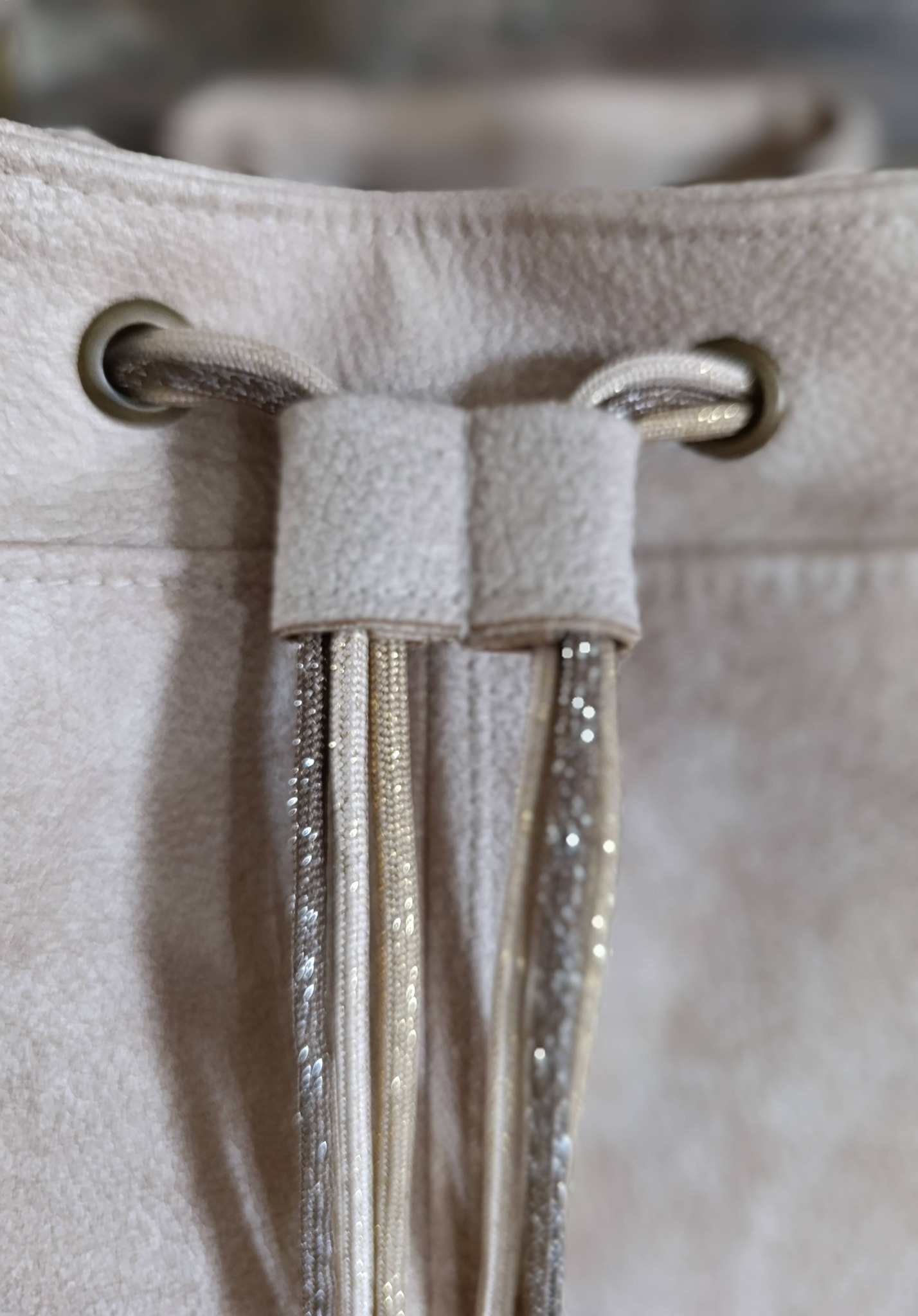 Fermeture par lien de camaïeu pailletée.